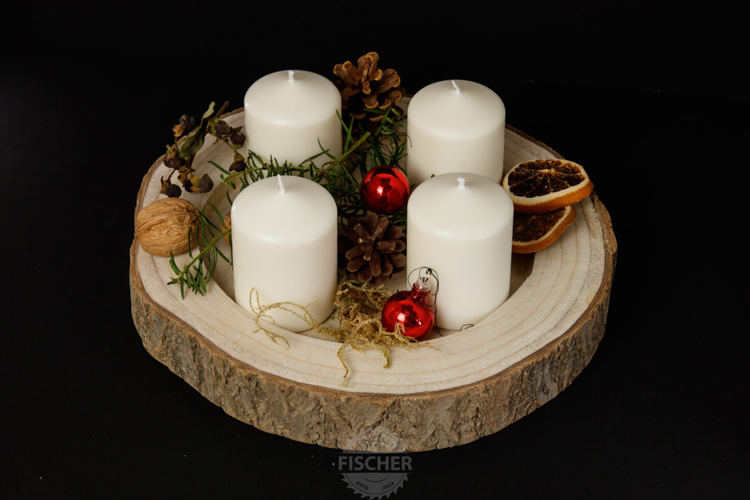Adventskranz aus Eiche mit natürlicher Baumkante