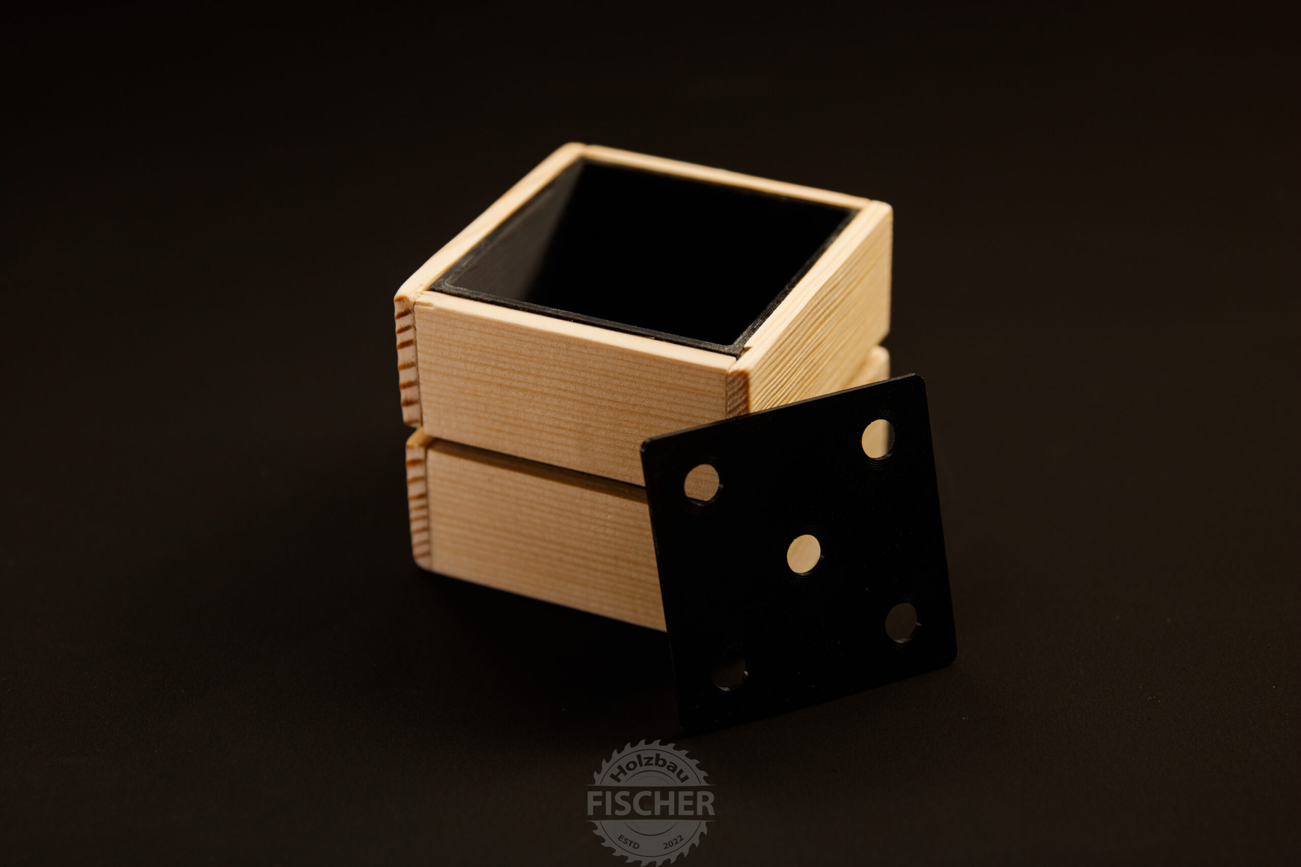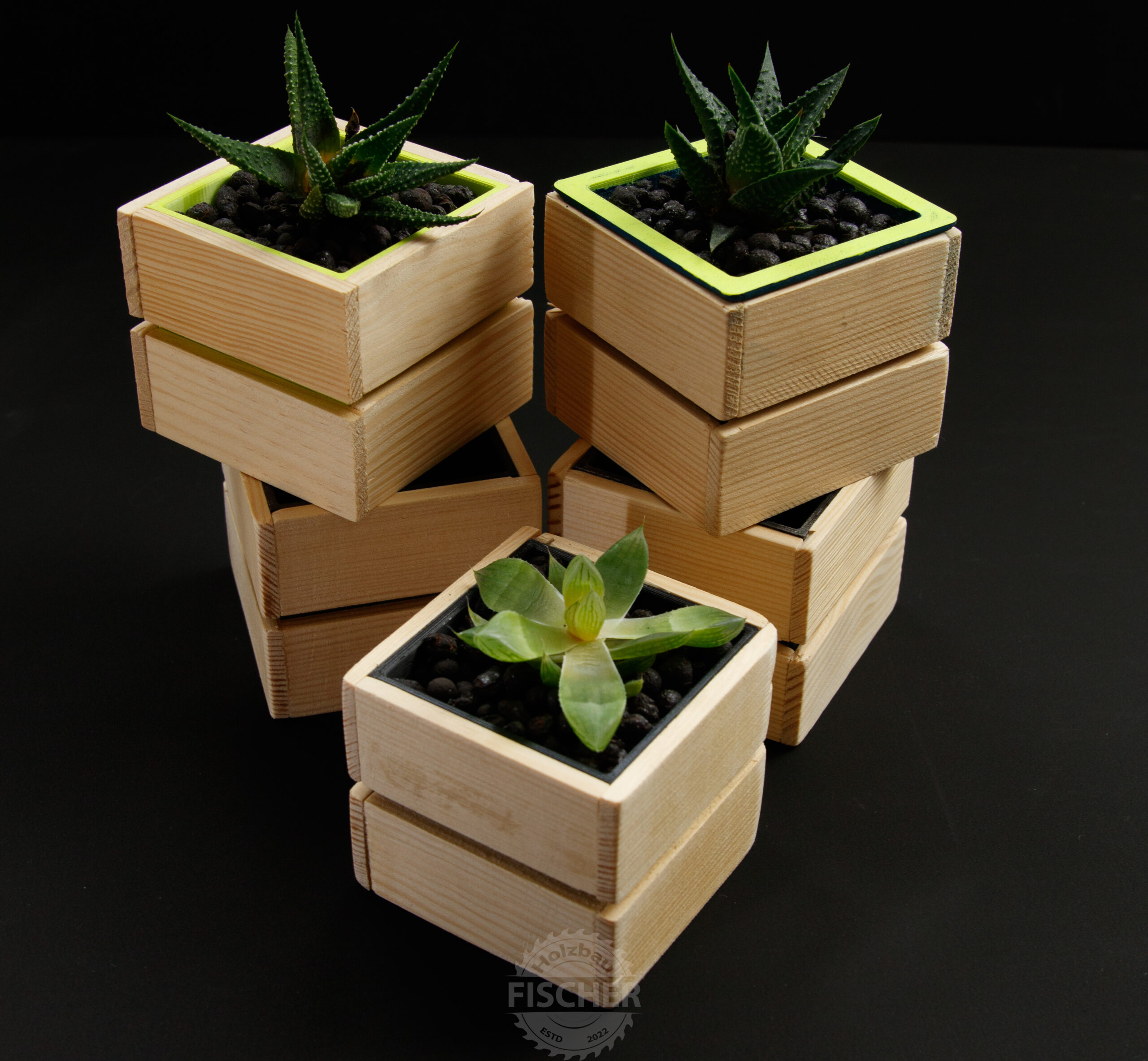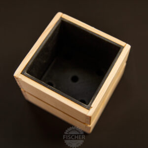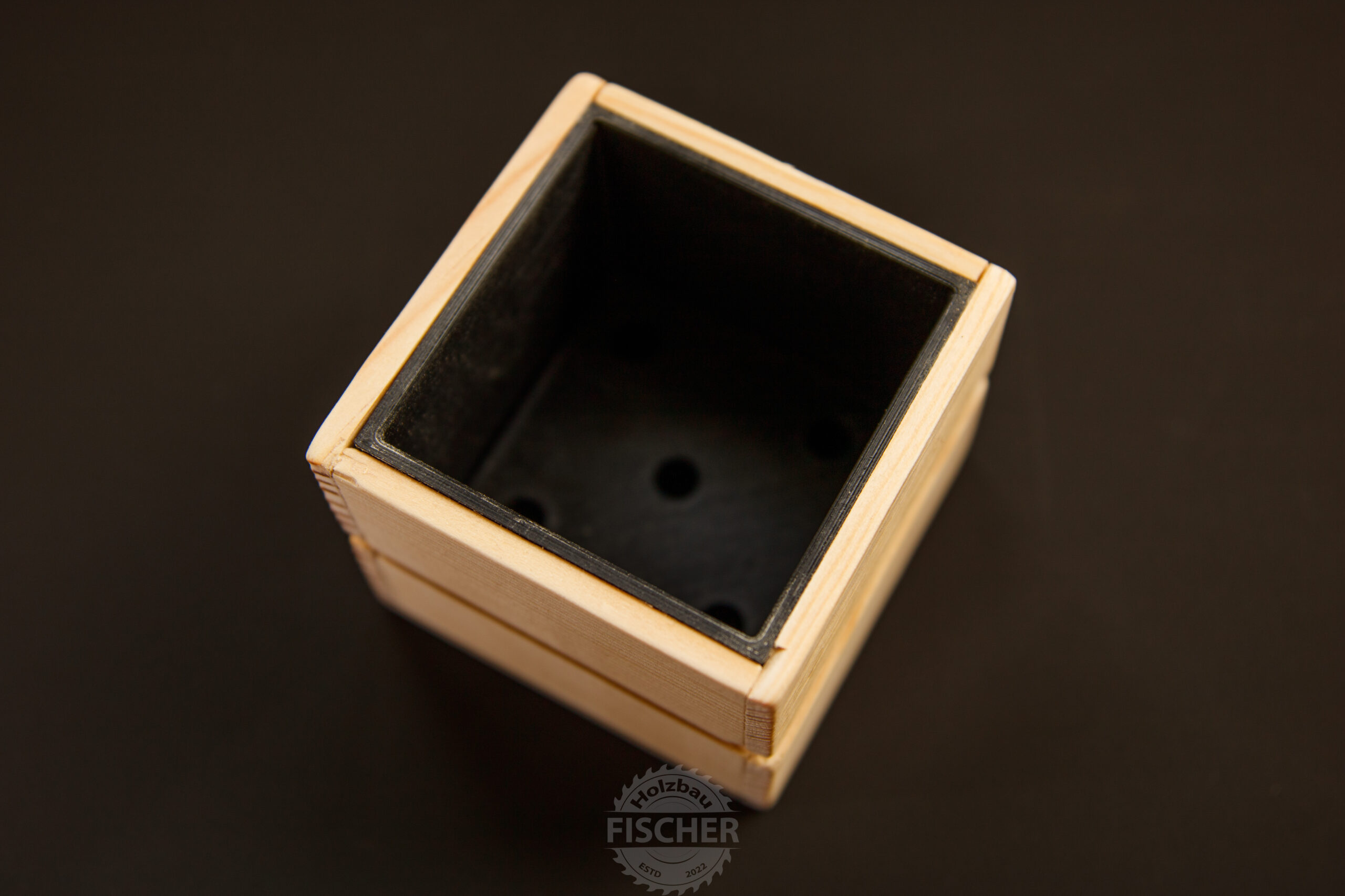 • Selbsthergestellter Innentopf mit verklebter Holzverkleidung
