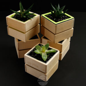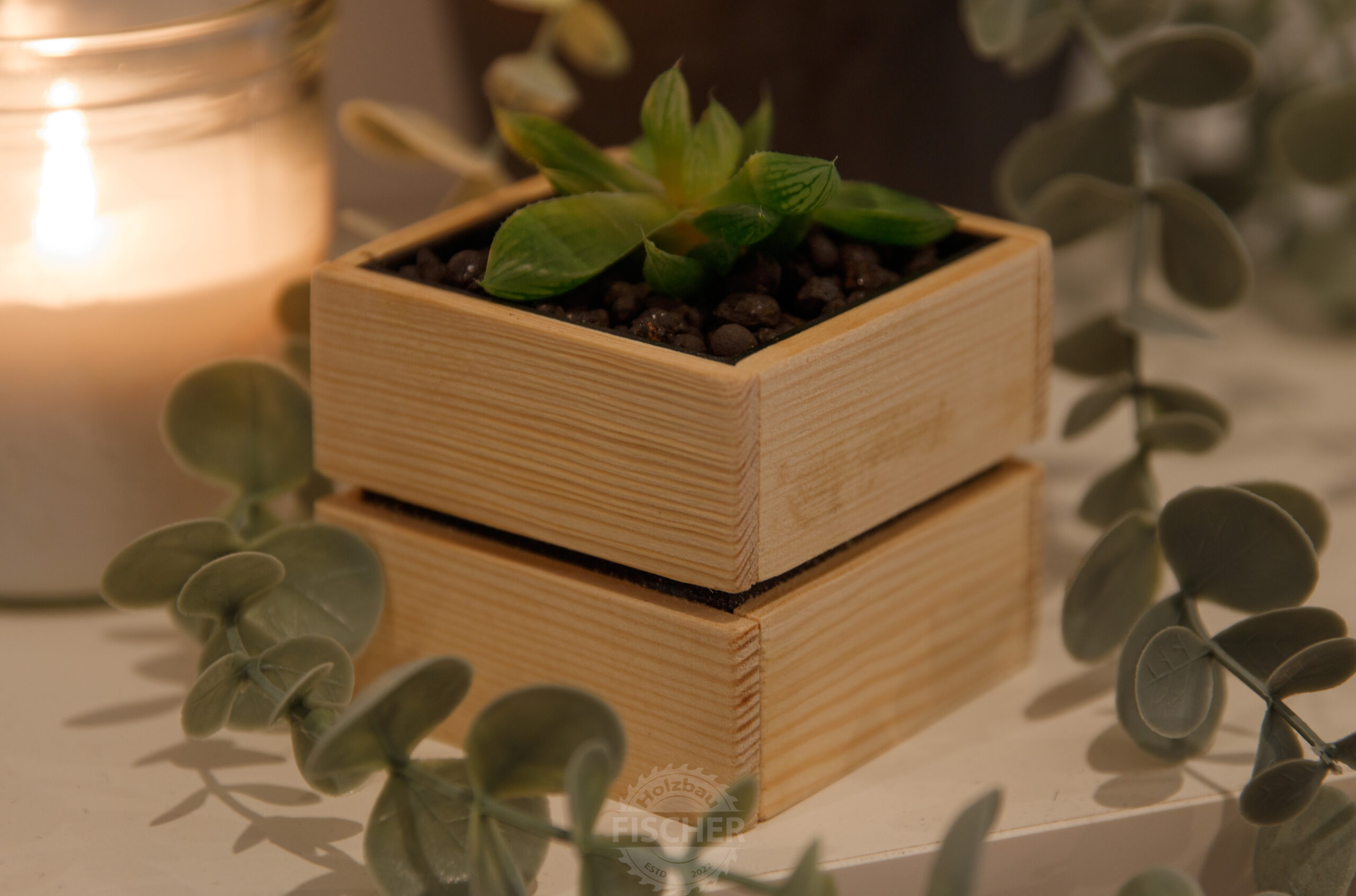 • Innentopf aus PLA (Kunststoff), Verkleidung aus Kiefernholz